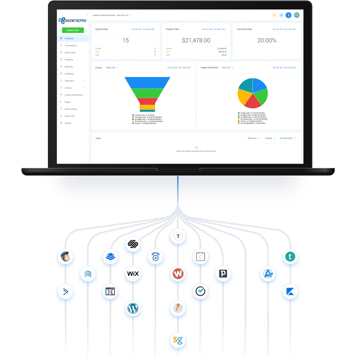 Build forms and funnel pages to capture leads, user automated sms, email, phone calls, voicemails, and Facebook Messages to nurture leads through custom pipelines, converse with leads & clients via text, phone, and Facebook Messenger (all in one stream!), and more!