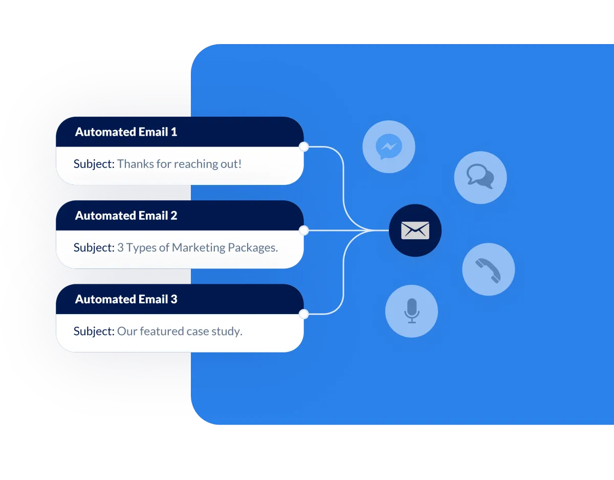 Build custom nurture campaigns that send text messages, emails, voicemails, and even Facebook messages to convert leads automatically.
