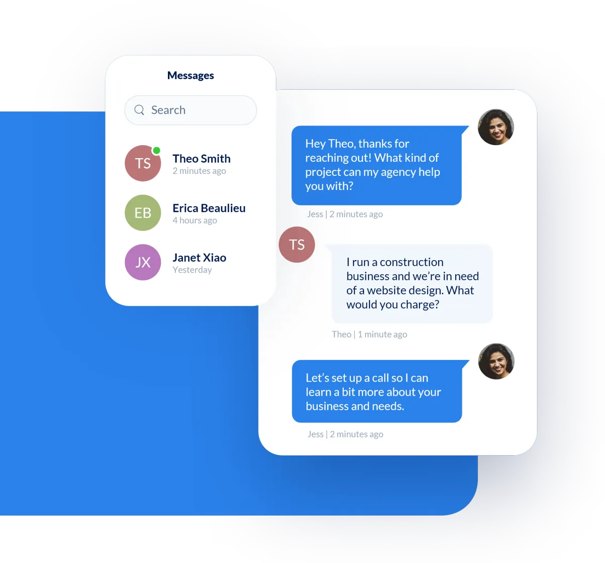 Keep track of conversations whether they happen via text message, email, phone calls, or Facebook messages. Two-way text included!