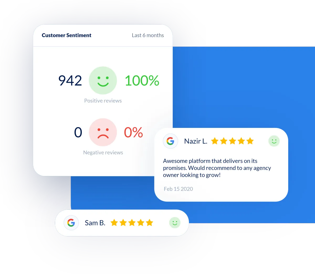 Send review requests via SMS and email with the push of a button. Monitor and reply to new reviews right within the dashboard.